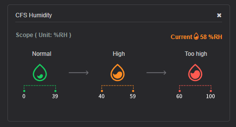 Displays the current humidity inside the CFS. Click the humidity reading to view detailed humidity range explanations.