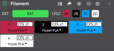 Once a device connected to CFS is set as the current device on the Device page, clicking the "Auto Mapping" button in the Filament section will sequentially map the CFS slots to the corresponding filament presets.