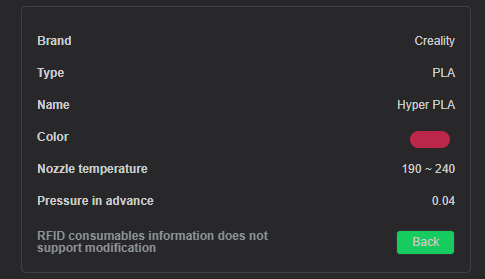 For non-Creality RFID or other filaments, manual editing is supported. Users can manually input and modify filament settings.