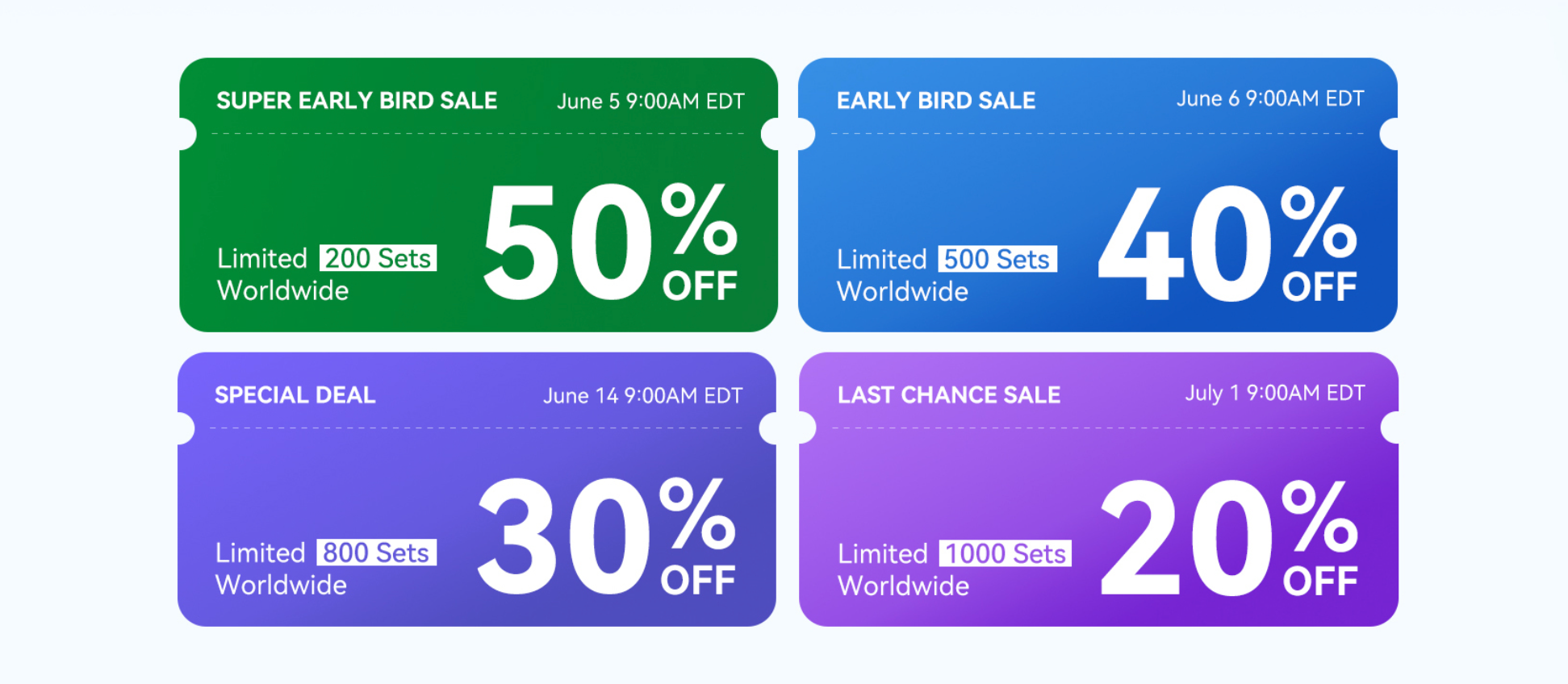 Phase 4: Last Chance - 20% Off for the next 1000 units, from July 1, 2024, to July 20, 2024, starting at 9:00 AM EDT.