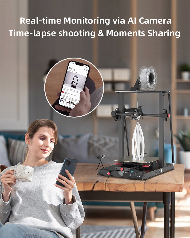 Every bit of model building is witnessed. Equipped with an AIoT HD camera, the CR-10 Smart Pro allows users to have real-time checking remotely. The whole process is under control.