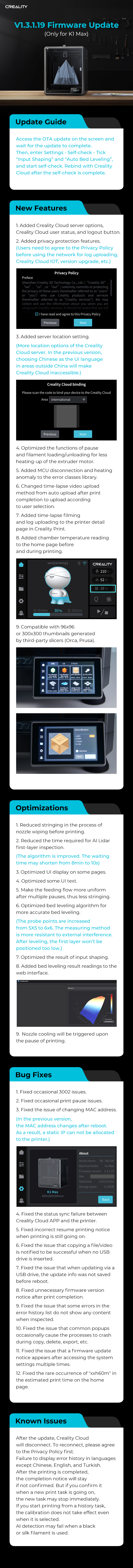 / V1.3.1.19 Firmware Update(Only for K1 Max)