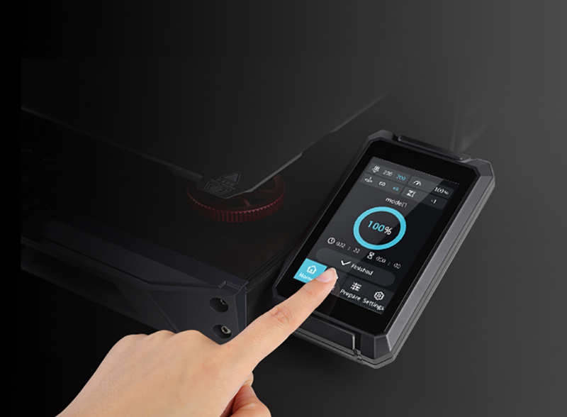 Ender-3 S1 Plus is also equipped with a 4.3-inch color touch screen embedding an accessible UI that supports 9 languages, including English, Spanish, German and French. The eco-friendly screen automatically dims after three minutes if left idle, saving more energy. Compared with the knob screen of Ender-3 S1, it offers a seamless click-to-control experience to users.