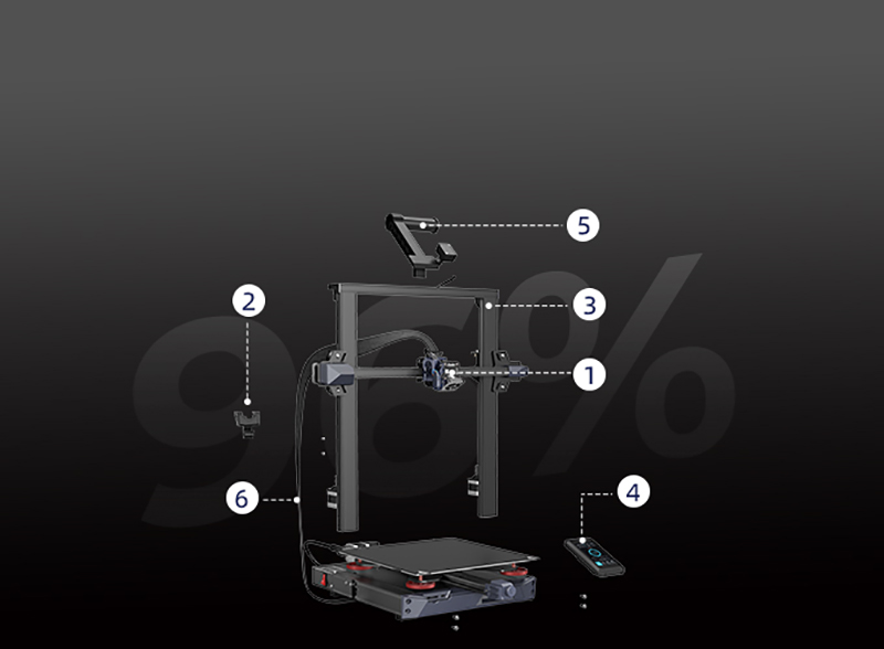 96% preassembled, Ender-3 S1 Plus takes only six steps to set up. For DIY enthusiasts and 3D printing beginners, Creality offers a detailed manual and online video guide to provide a smoother assembly experience.