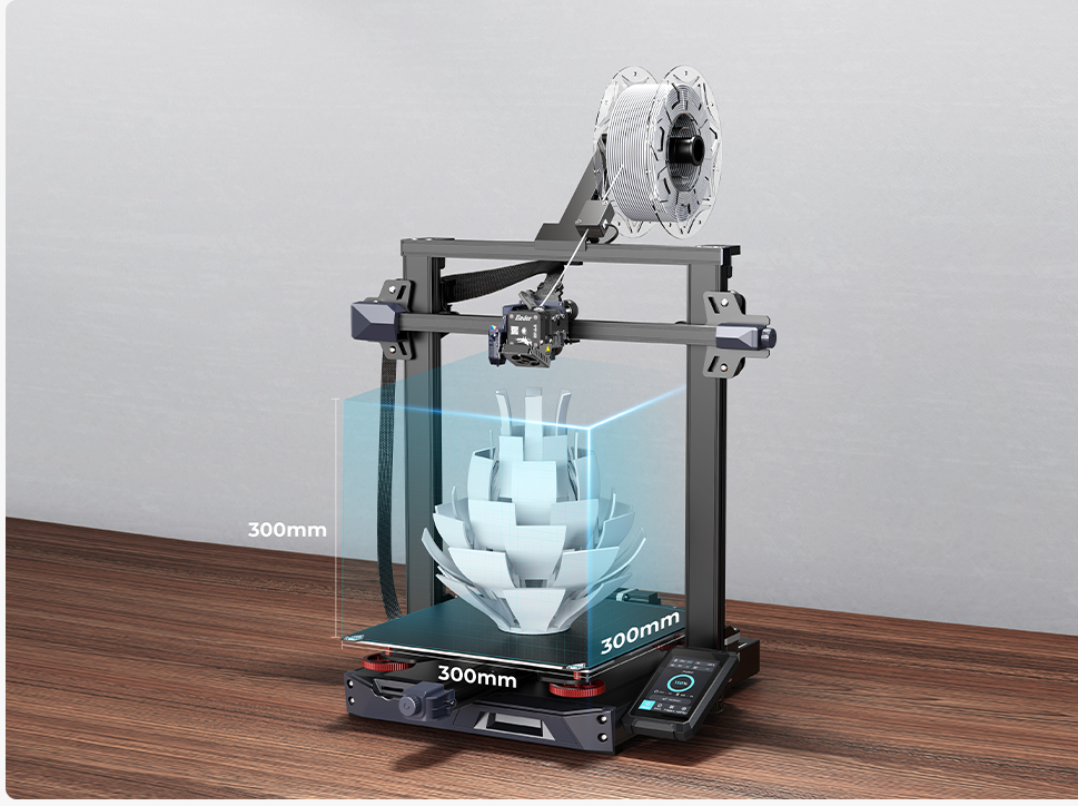 300*300*300 mm build volume with self-developed smart system unlocks more creative possibilities.