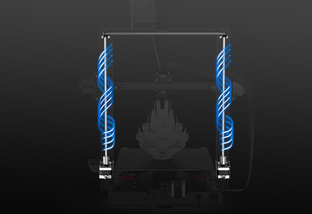 The synchronized dual Z-axis leadscrews of Ender-3 S1 Plus are another solid assurance of print quality and success rate. This dedicated design avoids tilt and wobble problems of the X-axis gantry and hence helps produce prints with finer details and no Z banding lines.