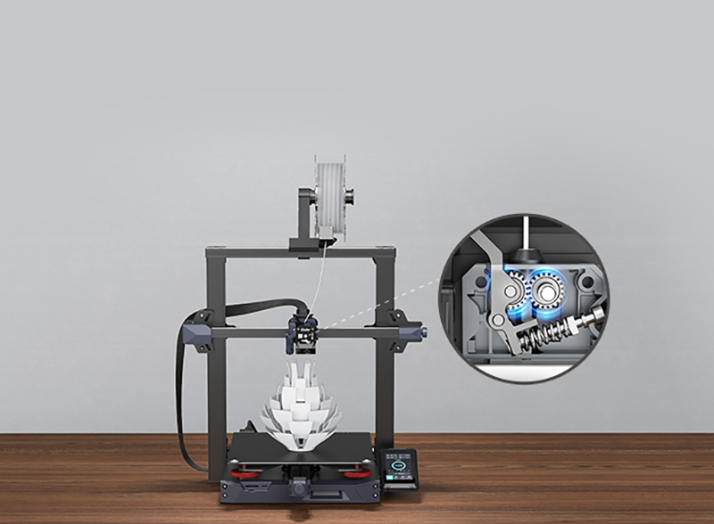 Ender-3 S1 Plus adopts a high-performance "Sprite" extruder with a weight of only 210g. The compact and lightweight design sufficiently reduces vibrations and ensures good print quality and high speeds at the same time. Its full-metal body has superior heat distribution capability and can process a wider range of filaments up to 260°C and is ideal for flexible materials such as TPU. Its dual gear system enables the extruder to feed or retract the filament more precisely and smoothly.