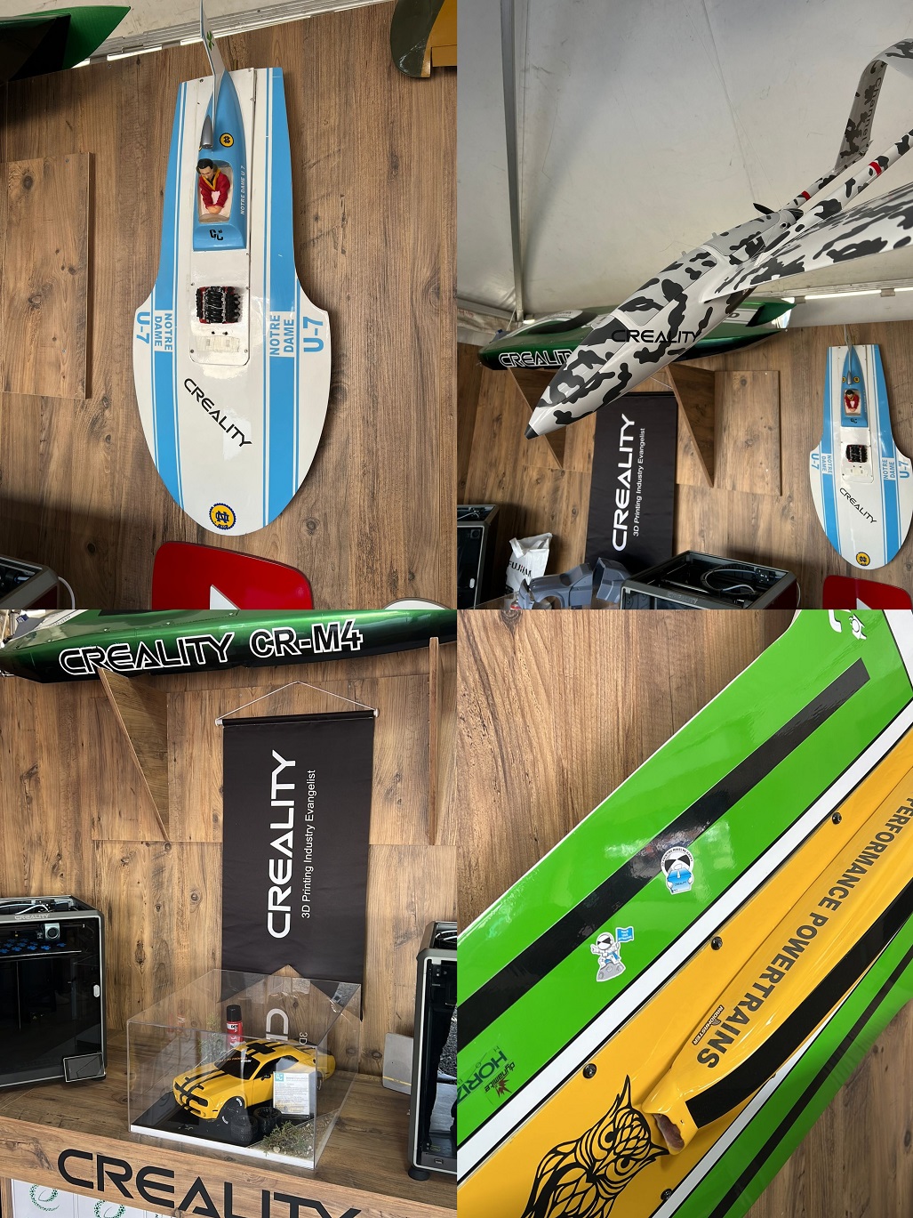 Naraş skillfully utilized Creality's 3D printers to create captivating models, such as remote control boats, cars, and airplanes, all labeled with the Creality logo.