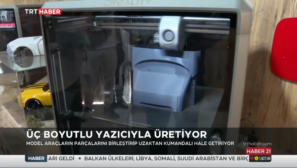 The booth also received media coverage from Turkish television stations(TRT Harber)and Naraş was interviewed. During the interview, he showcased how to use Creality K1 Max to produce a detailed car model and made the car race.