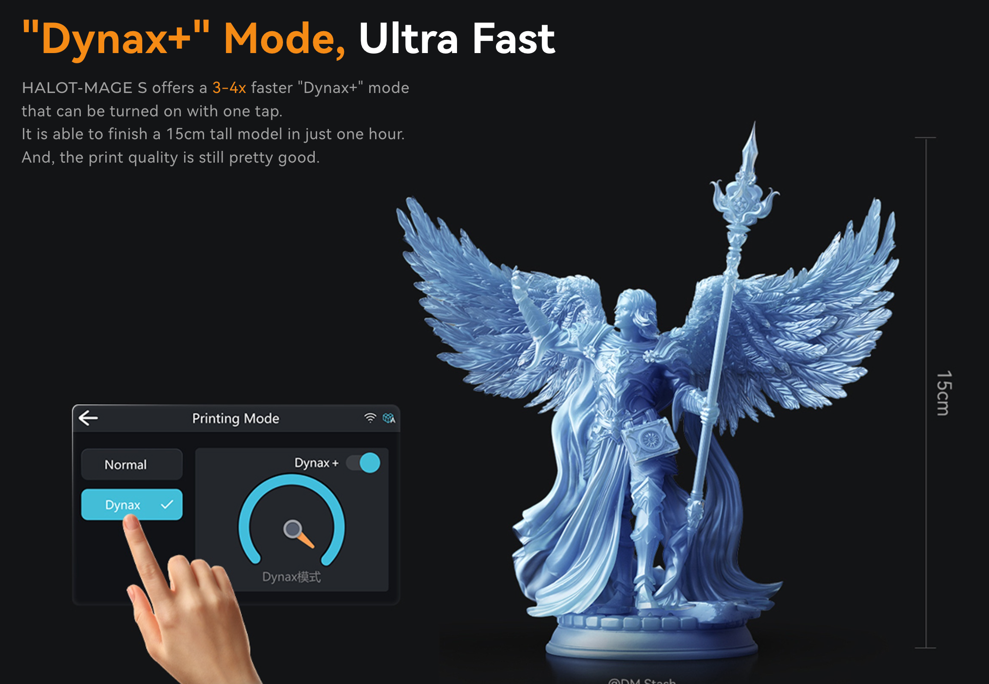 With its revolutionary "Dynax+" ultra-high-speed mode, the HALOT-MAGE S redefines the pace of 3D printing. Capable of producing models up to 15cm in height in a mere 1 hour*, this mode accelerates printing speeds by 3 to 4 times compared to conventional methods. Leveraging the proprietary "Dynax" motion system, this printer achieves a remarkable balance between speed and stability. Each layer is precisely printed with minimal downtime, thanks to the swift 1.2-second interval between layer transitions.
