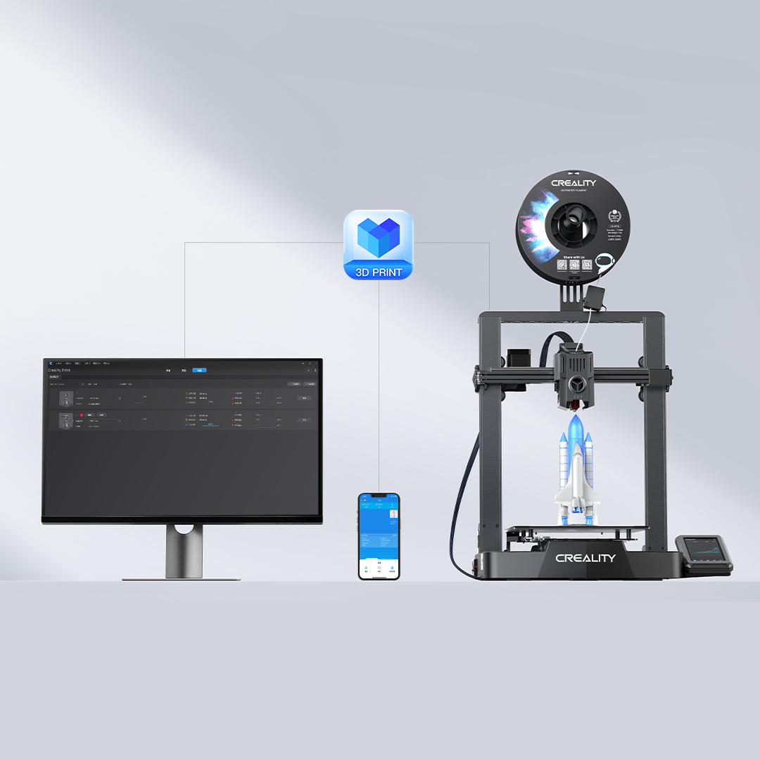 Moreover, the printer seamlessly integrates with Creality Print and the Creality Cloud app, enabling remote printing and monitoring, adding a new dimension of convenience. The printer's brand-new UI (user interface) enhances usability with global navigation buttons, real-time model previews, and dynamic displays that provide an intuitive and vivid user experience. Smart algorithms are introduced for input shaping and flow optimization to eliminate ripples and corner bulges, delivering exceptional model detailing.