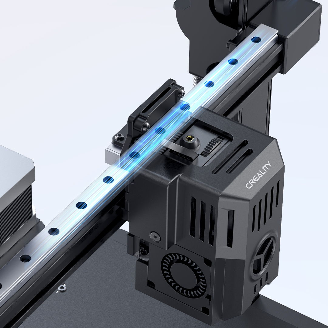Meanwhile, the X-axis employing precision ball linear guides and the Y-axis with dual linear shafts ensure each move is accurate, steady and frictionless, with high-strength bearing steel supporting wear resistance and longevity. An upgraded hot end featuring a 60W ceramic heating element and a copper-titanium alloy nozzle ensures smooth flow and high compatibility for materials. With dual cooling fans on each side of the print head, even cooling and rapid model formation is ensured, resulting in significantly improved print quality.
