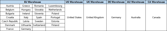 If you're located in one of the following countries, your order will ship from a nearby warehouse.