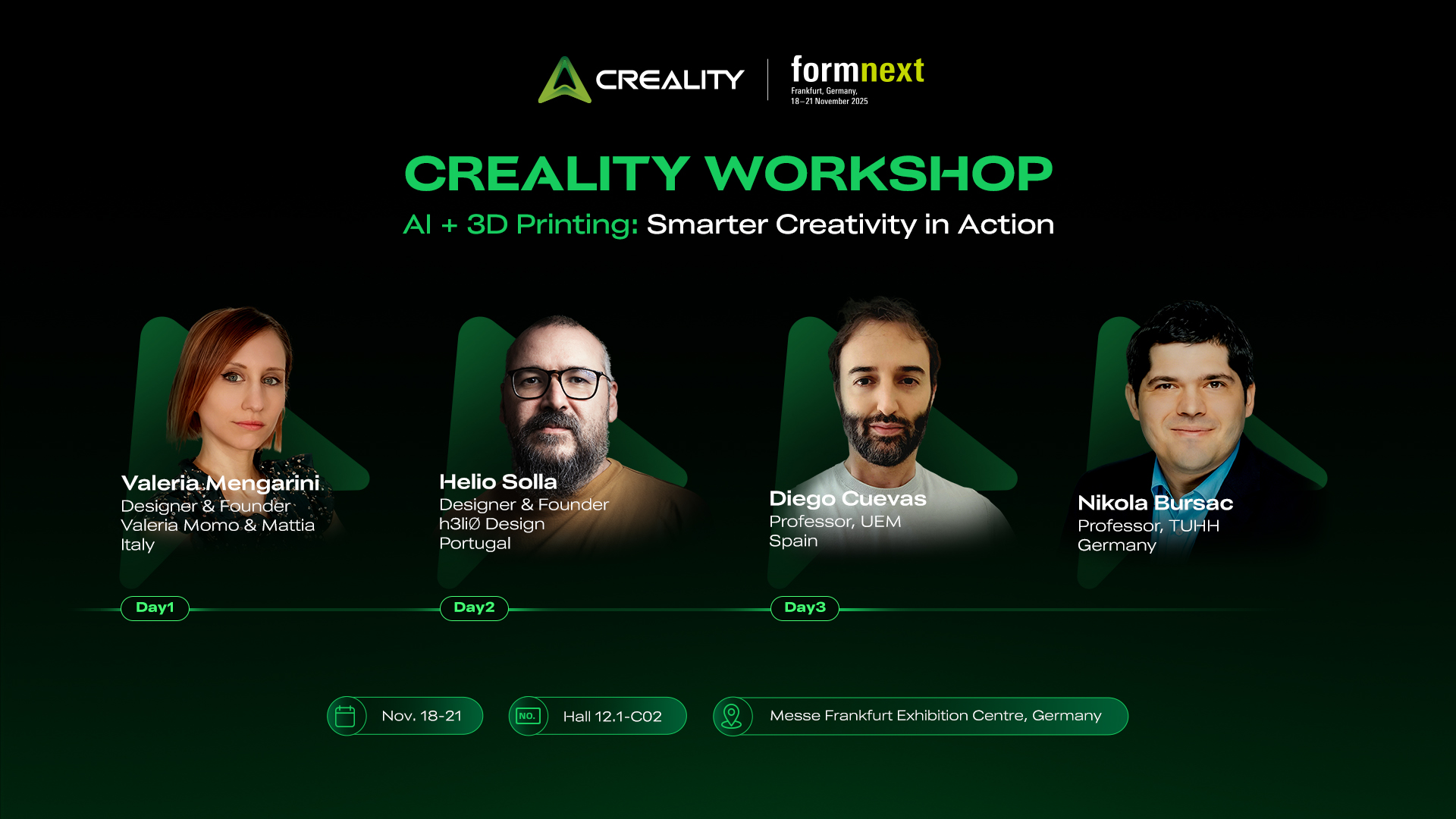 Meet the minds shaping the future of 3D printing! At Formnext 2025, Creality brings together top international designers and professors to share their insights, explore the latest AI-driven design trends, and showcase inspiring projects.