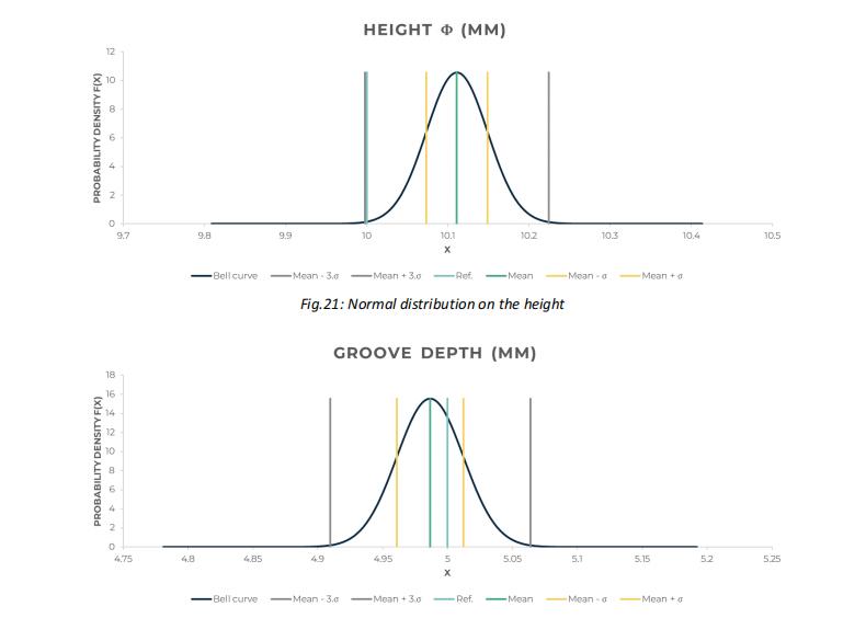 Next, we conducted a repeatability test to assess the printer’s capability to produce multiple parts with the same or very similar dimensions. By studying the normal distribution of the concentric circle’s diameters, we can say that the printer offers sufficient repeatability when the average deviation from the intended dimensions is under 0.1mm, and the standard deviation is under 0.05mm. Our measurement devices are accurate to ±0.015mm.