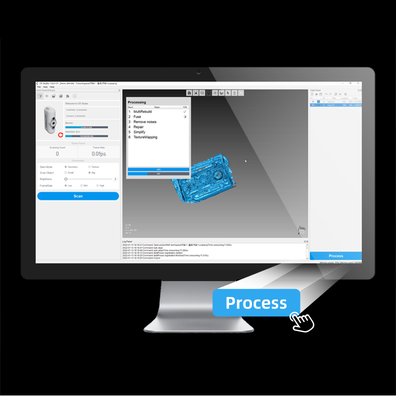 CR Studio developed with the integration of 3D complete automation algorithms enables model optimization within one click! It supports multi-positional auto-alignment, auto-noise removal, auto-model simplified topology, auto-hole filling, and auto-texture mapping, impressing users with ease of use. Friendly enough, even kids and beginners can experience the fun of 3D scanning.