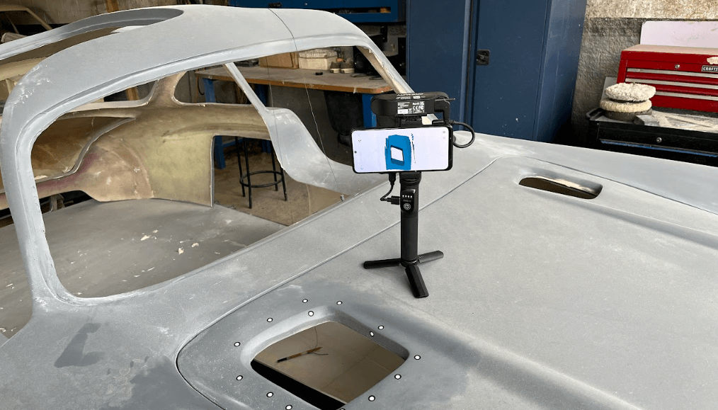 🔹 Scanner 3D Ferret Pro – Captura de alta precisão para digitalização detalhada da carroceria e elementos do veículo. Esse processo garantiu um modelo digital fiel ao original, servindo de base para a fabricação das peças.