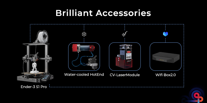 Modification accessory usually means an increase of 3D printer functions. Creality Ecosystem also brings three modification accessories: Water-cooled HotEnd, Wifi Box 2.0, CV-Laser Module.