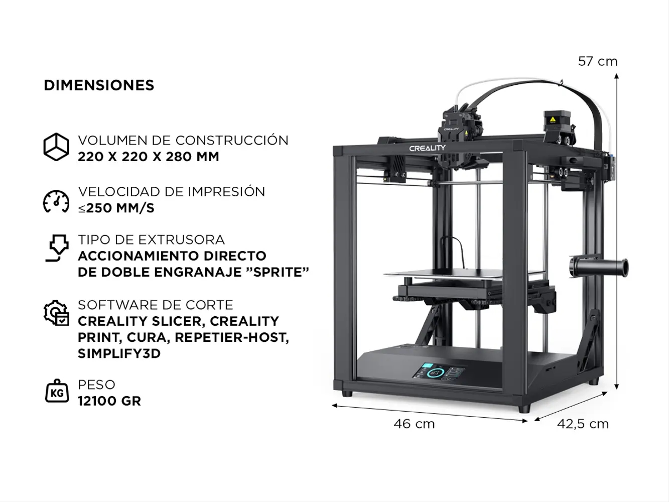 Creality Ender-5 S1 Una impresora con velocidades de impresión de hasta 250 mm/s e impresión a alta temperatura de 300 °C, la Creality Ender-5 S1 es una impresora FDM versátil y duradera.