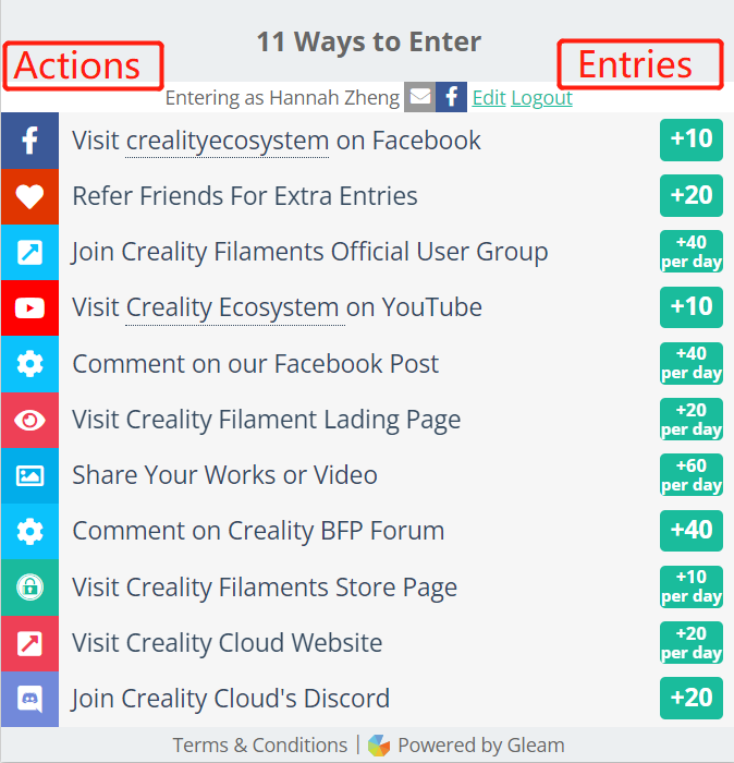 You can complete every action to unlock entries. The more entries you earn, the more chances you win prizes.