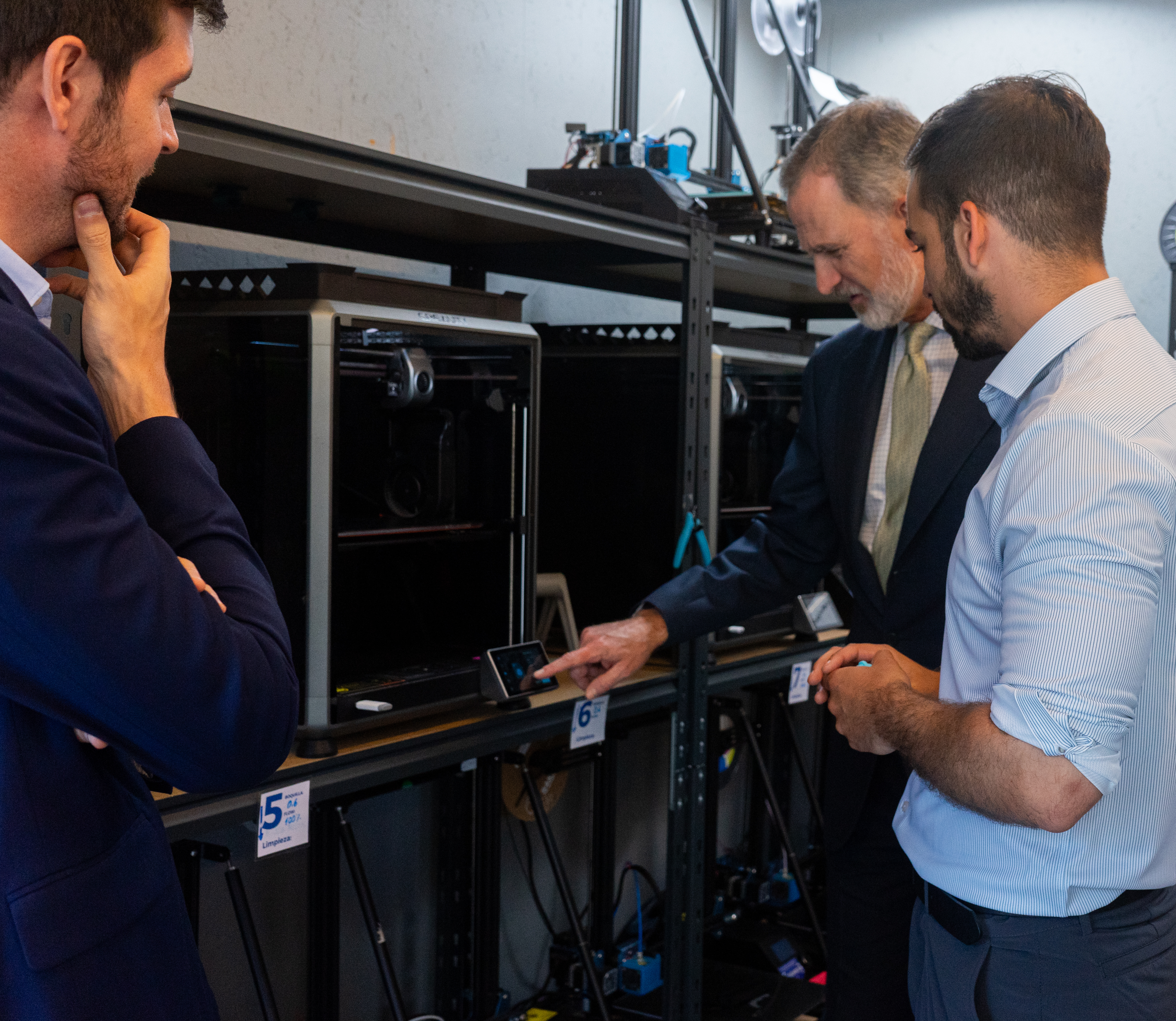 Durante la visita del Rey, Ayúdame3D hizo una presentación especial de su taller de impresión 3D de última generación. El fundador Guillermo presentó con orgullo al Rey que estas máquinas de impresión 3D de alto rendimiento son todas de la marca china Creality. Destacó la novedad del diseño de las máquinas de Creality, la excelencia de la calidad de impresión y compartió su estrecha relación de trabajo con Creality durante 6 años.