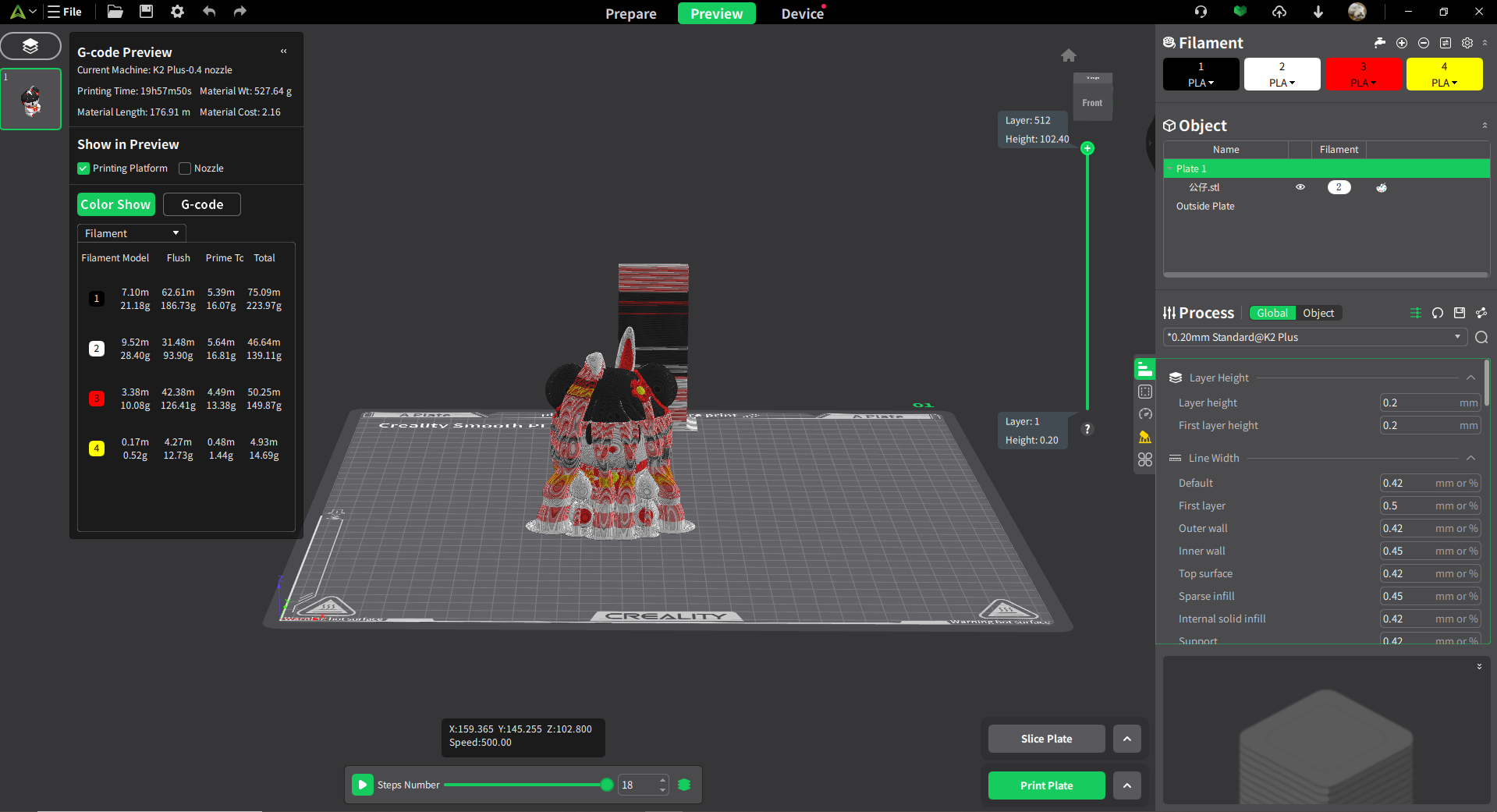 Click the "Slice Plate" button in the bottom right corner of Creality Print to generate the .gcode file required for your printer.
