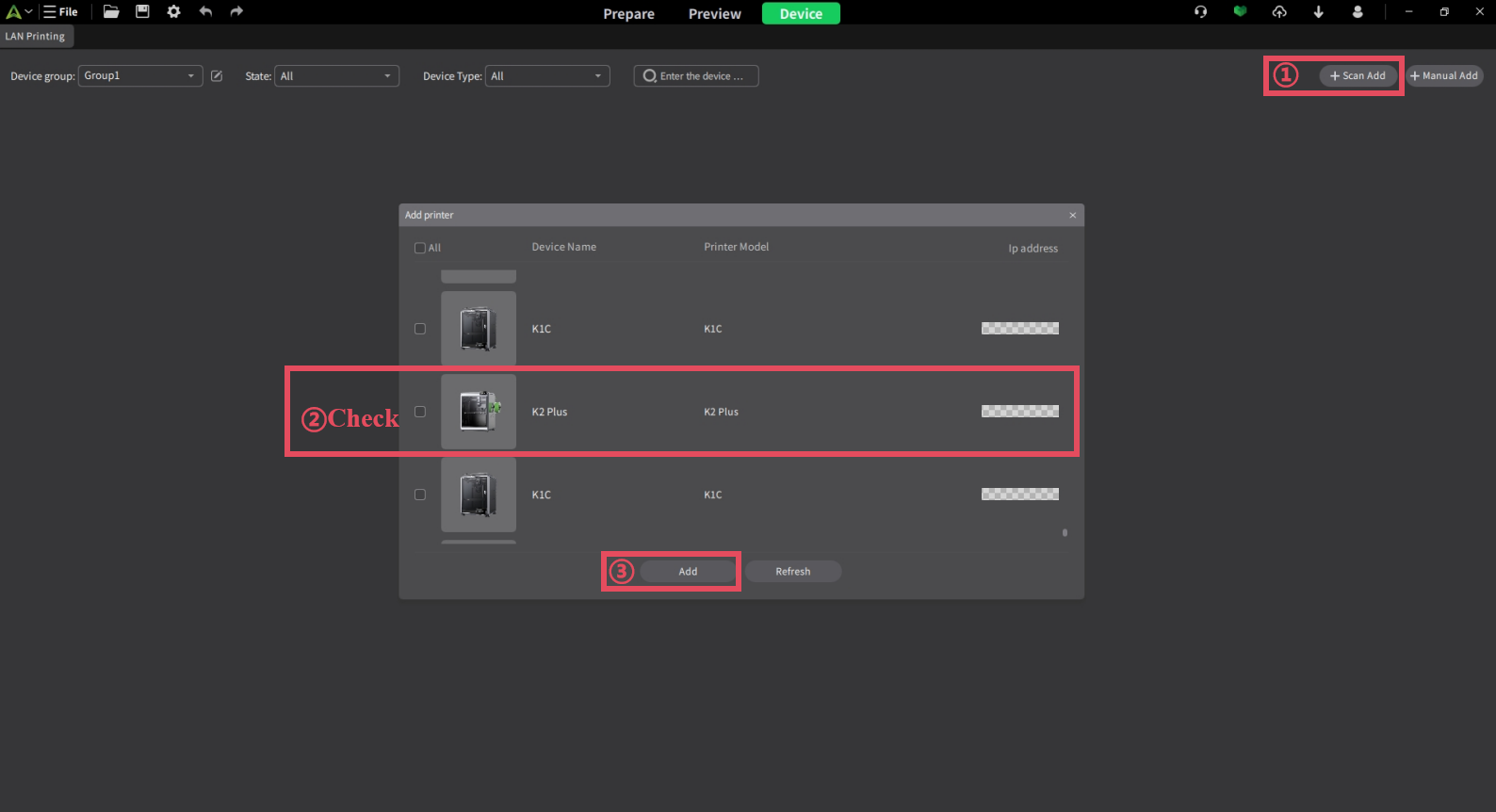 When your printer and computer are on the same local network, you can use the scan-to-add function. The steps are as follows: