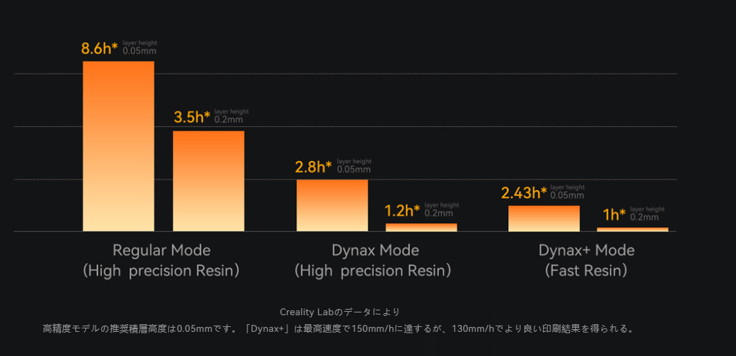 HALOT-MAGE Sは、「Dynax+(ダイナックス+)」超高速モードを搭載しており、高さ15cmまでのモデルをわずか1時間*でプリントすることができます。このモードは従来の方法に比べて3~4倍の速度を実現しております。独自の「Dynax+(ダイナックス+)」モーションシステムを活用することで、造形速度と安定性の見事なバランスを実現しています。各層の切り替え間隔は1.2秒と迅速で、不稼働時間を最小限に抑えています。