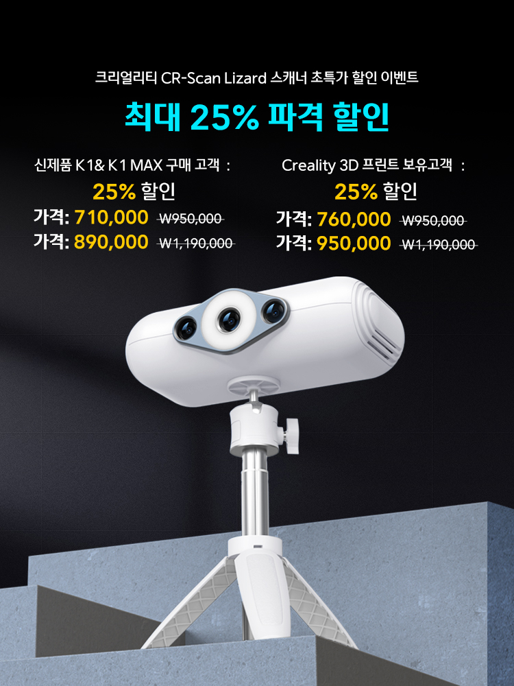 Creality사에서 기존 유저 대상으로 Creality 'CR-Scan Lizard' 3D스캐너 파격 할인 이벤트에 참석할 기회를 마련했답니다.