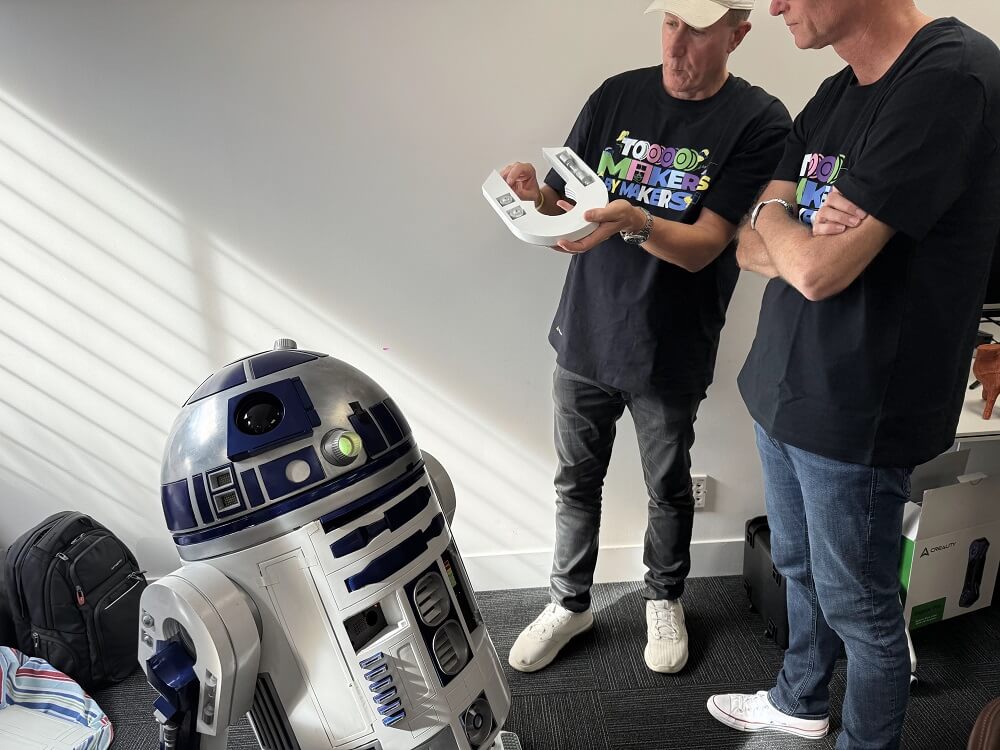 John won with his 365-day project—a remote-controlled, talking R2-D2 from Star Wars, printed all on a Creality Ender-5.